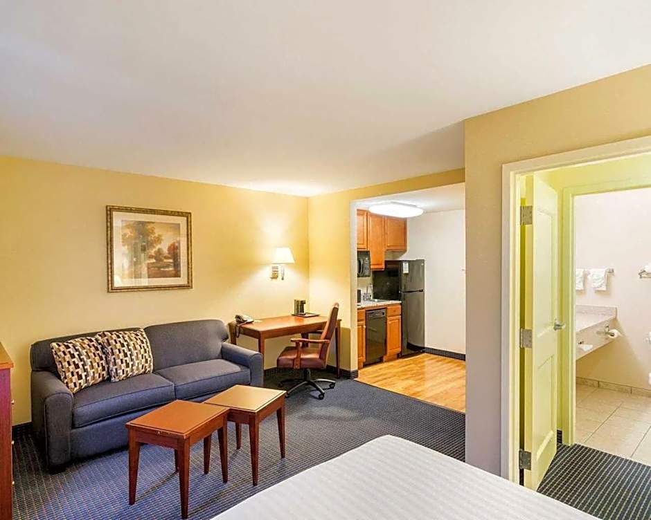 This suite features a flat-screen TV and a kitchenette with a microwave and refrigerator.